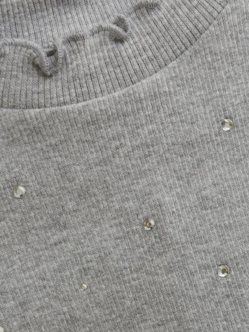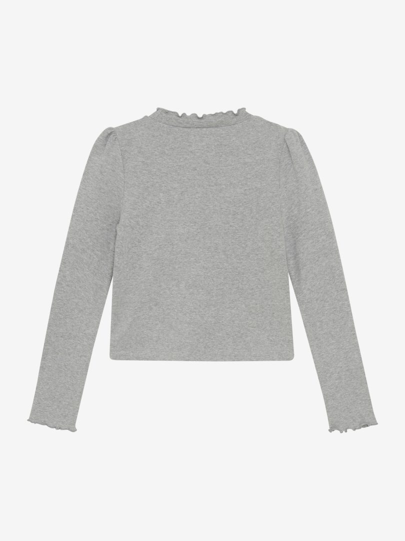 Nice long-sleeved T-shirt from Creamie with the similistre across the chest and shoulders. The T-shirt has a high neck, long sleeves and a wrinkle effect at the sleeve and neck neckline. The T-shirt is in a ribbed cotton quality with a bit of stretch, which makes it comfortable to wear.