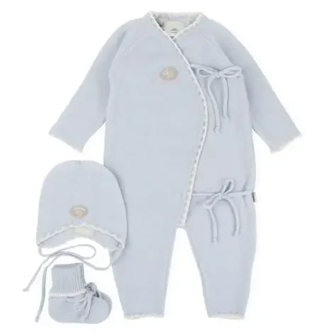 Hentesett fra Lillelam består av en nydelig ulldress med matchende lue og tøfler. Plaggene er laget i 100% myk merinoull som føles fantastisk mot barnets hud.