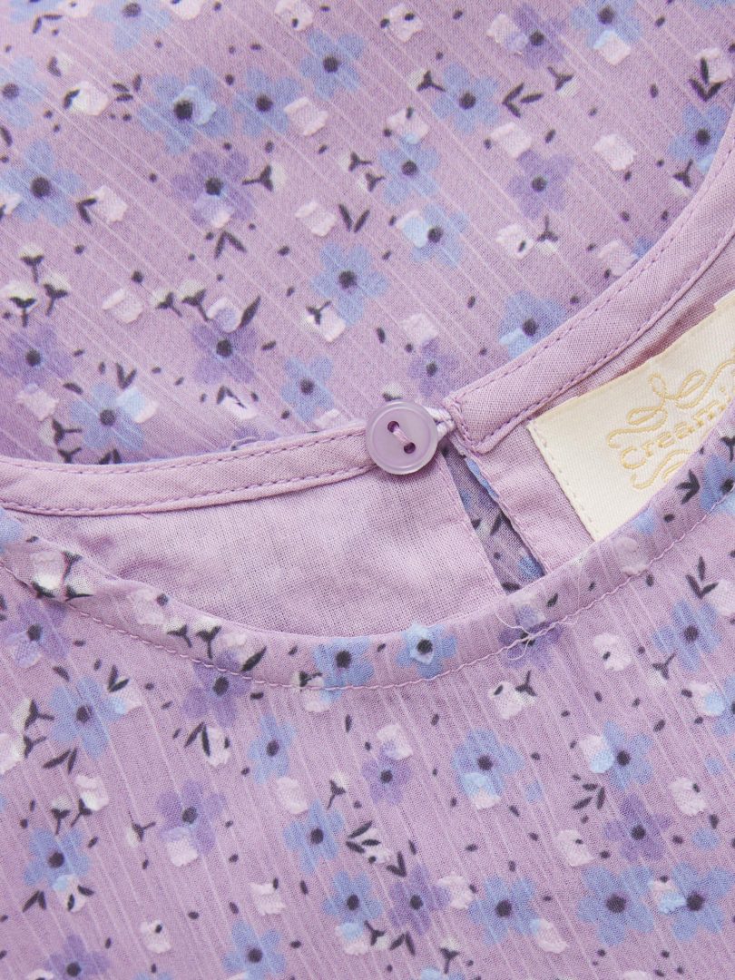 All-over-printet kjole fra Creamie laget i chiffon. Denne kjolen har korte ermer og rynker ved midjen og ermene.