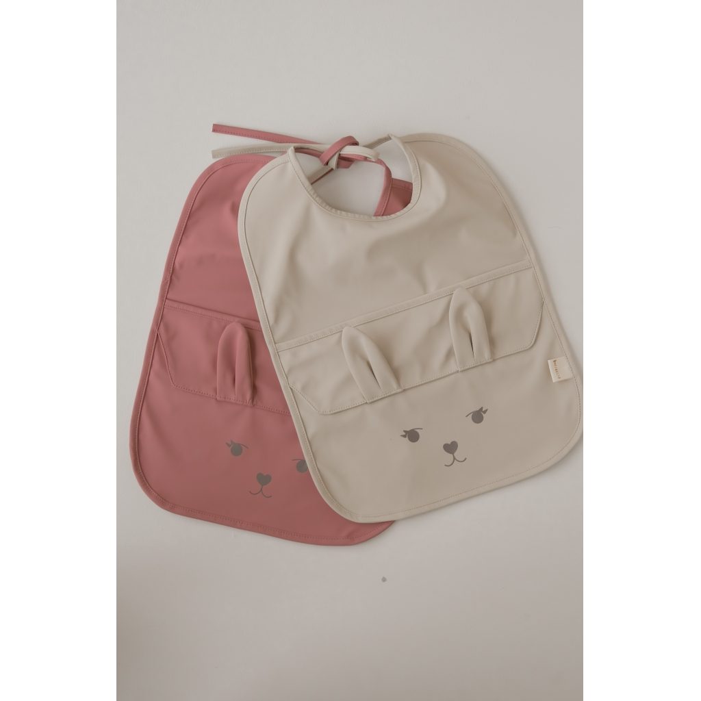 Lang smekke 2-pakning – Bear er en praktisk hverdagssmekke designet i ensfargede farger med søte bjørnedetaljer. Smekken har myke 3D-ører som de små kan ta på og utforske, noe som gir et lekent sensorisk element under måltidene.