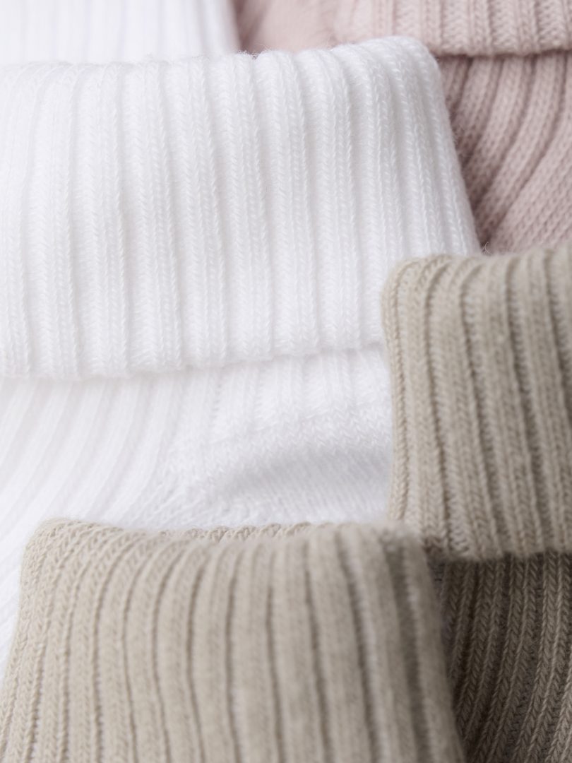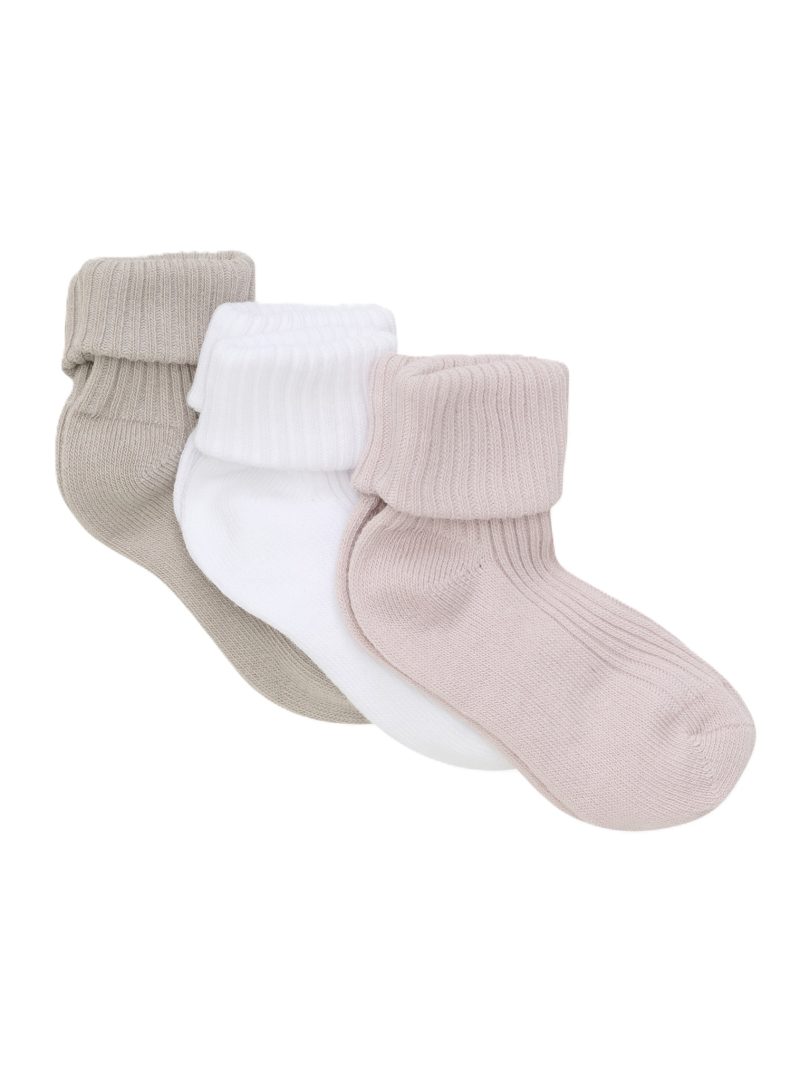 Flott 3-pakning med babysokker med ribbemønster. Sokken har brettet ribbekant øverst som sikrer at den holder seg på foten. Slitesterk kvalitet som er formet etter hæl og tå for god passform. Myk tå uten sømmer eller irriterende sømmer. Sertifisert i henhold til OEKO-TEX® STANDARD 100 Sert. nr. 2276-364 DTI.