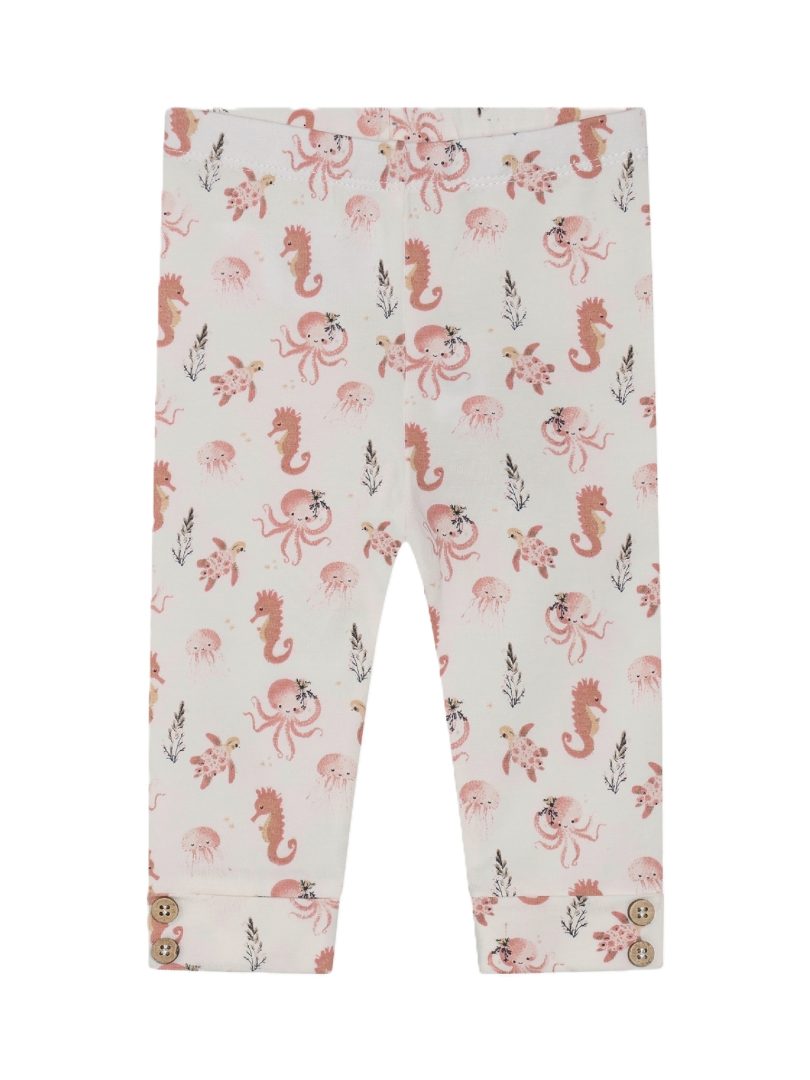 Leggings fra Minymo. Leggingsene har et helprint. De har en elastisk midje. Leggingsene er brettet opp ved ankelen og detaljert med knapper. Laget med sertifisert økologisk bomull. Sertifisert i henhold til GOTS – økologisk CERES-0366, Sertifisert i henhold til OEKO-TEX® STANDARD 100 Sert. nr. 2276-364 DTI