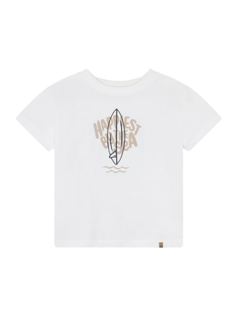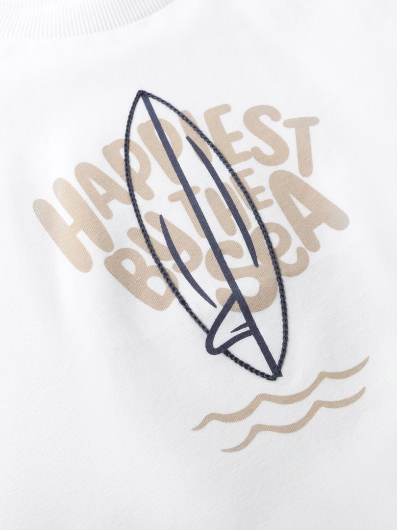 Kortermet t-skjorte med print fra Minymo. T-skjorten har print på brystet og rund hals.
