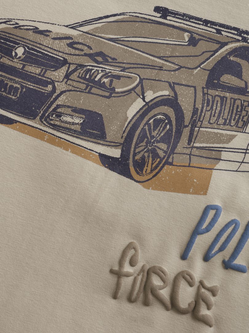 Short-sleeve T-shirt with a cool car motif on the chest. The T-shirt features a classic round neckline and is made from soft fabric for all-day comfort.
