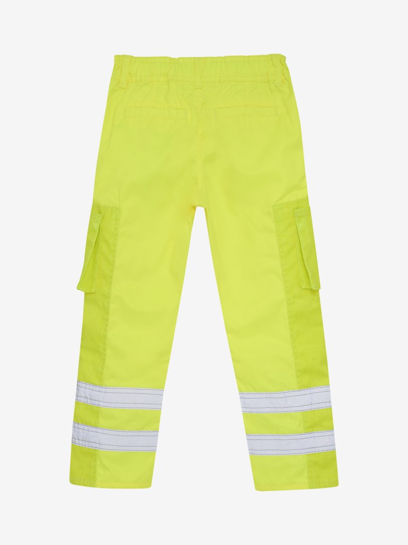 Kule arbeidsbukser fra Minymo. Buksene er i et twillstoff med kule neonfarger. Buksene har elastisk og justerbar midje med plass til belte for å sikre en god passform. Buksene har lommer både foran og på siden, og falske lommer bak. Reflekterende striper på buksebenet sørger for at barnet kan sees i mørket.