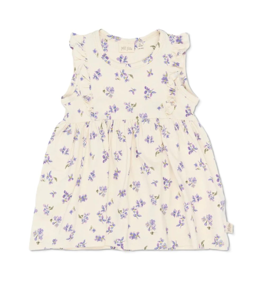 Denne kjolen er uten ermer og med en rund hals. Modellen har en midjesøm og et rynket skjørt som gir en behagelig, lett A-form. Materialet består av 95% bomull og 5% elastan for en elastisk passform. Overflaten er dekket blomsterprint. Den er enkel å kombinere med strømpebukser eller leggings og fungerer også godt under en cardigan på kjøligere dager.