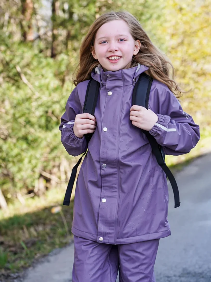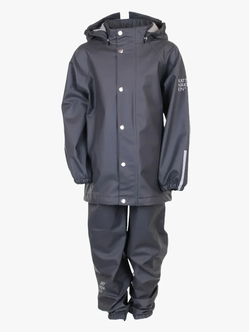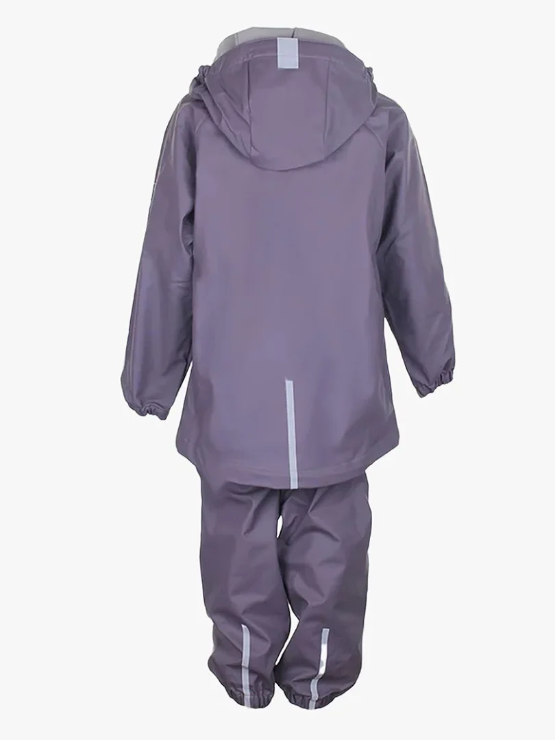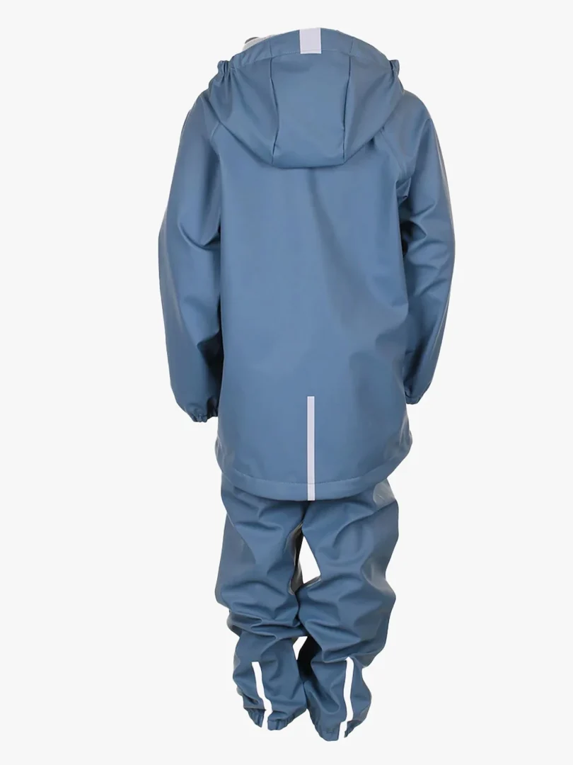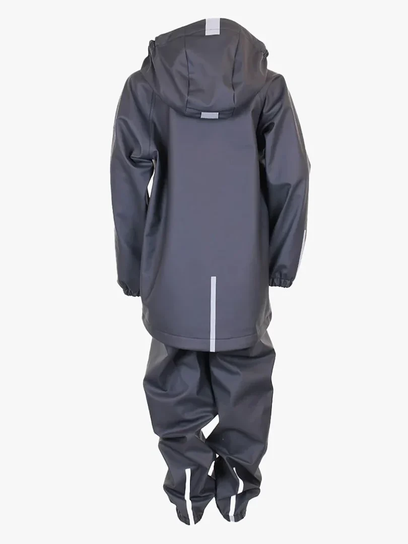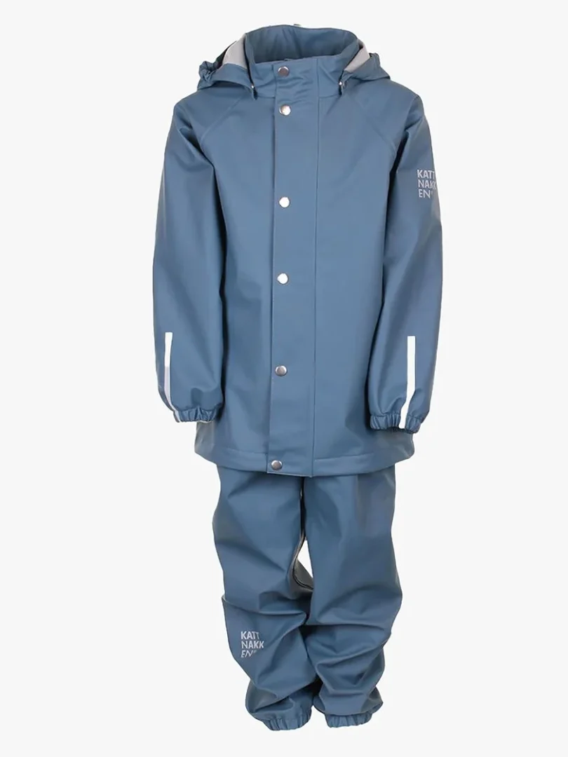Eit slitesterkt regnsett med børsta innside på både jakke og bukse. Skjult «mobillomme» i front på jakka, refleksar på både jakke og bukse. Regulerbar strikk i livet. Vannsøyle 30 000. Leveres med knapp på innside av buksebein slik at fotstrikk kan settes på om ønskeleg. Den har også avtagbar hette.