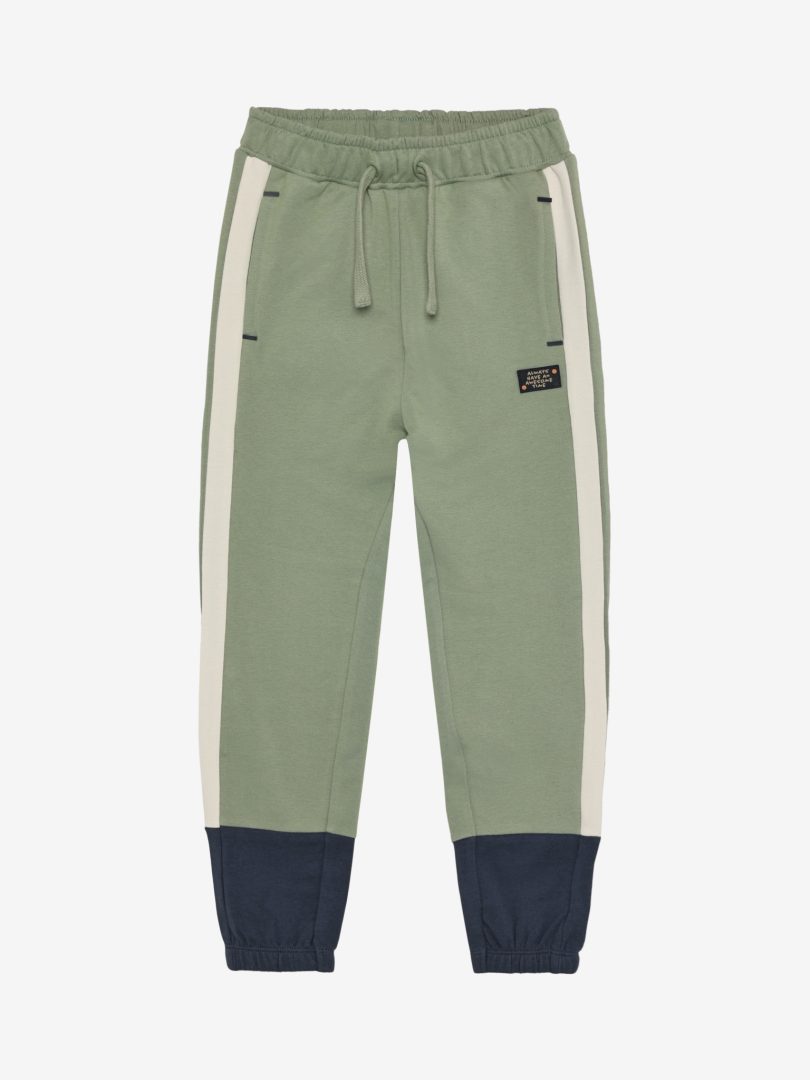 Flerfargede treningsbukser fra Minymo. Buksene har fremre lommer og er designet med elastisk midjebånd og justerbar snor. De har også elastiske mansjetter ved anklene for en komfortabel passform. Sertifisert i henhold til GOTS – økologisk CERES-0366